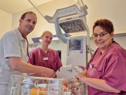 „Wir erleben immer wieder, wie stark Frühgeborene sind, wenn sie Geborgenheit spüren und ihre Eltern an ihrer Seite wissen, betont Christian Pflüger, Oberarzt mit der Schwerpunktbezeichnung für Neonatologie in der Klinik für Kinder- und Jugendmedizin, und erklärt weiter: „Unsere Aufgabe ist es, diesen kleinen Patienten mit modernster Medizin und zugleich mit viel menschlicher Wärme Starthilfe zu geben – damit sie gut wachsen, gedeihen und irgendwann stark durchs Leben gehen können.