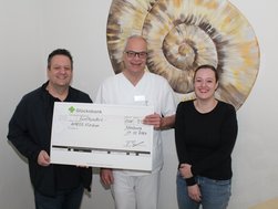 Bildunterschrift: Spendenübergabe in der Klinik für Kinder- und Jugendmedizin am AMEOS Klinikum St. Elisabeth Neuburg. (v.l.) Thomas Zandtner, Oberarzt Dr. Florian Wild und Kristina Ries