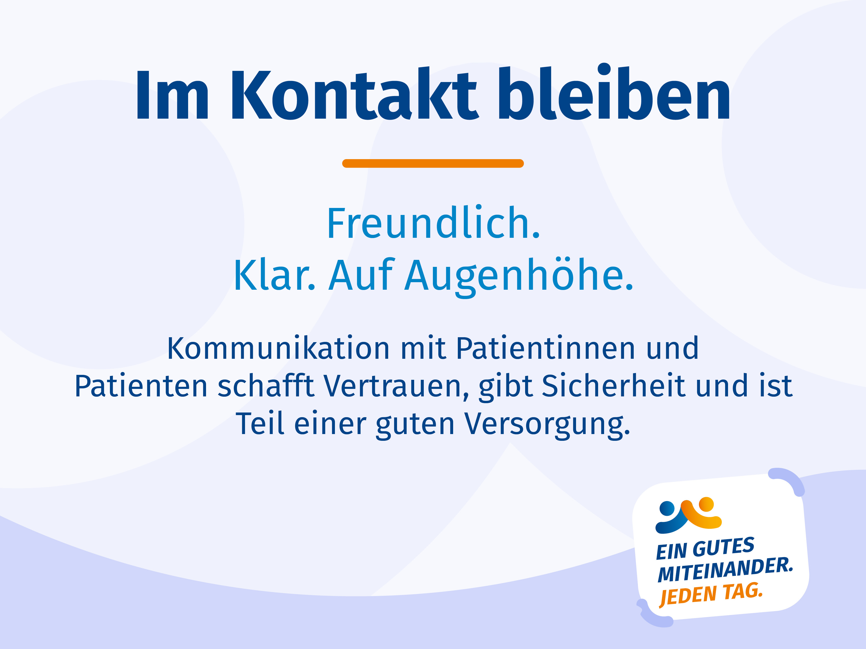 Ein respektvoller Umgang prägt unsere Zusammenarbeit, stärkt Teams und beeinflusst das Erleben unserer Patientinnen und Patienten. Diese Initiative macht sichtbar, was gutes Miteinander im Alltag bedeutet – und wie wir es gemeinsam gestalten können. Gutes Miteinander. Jeden Tag. |