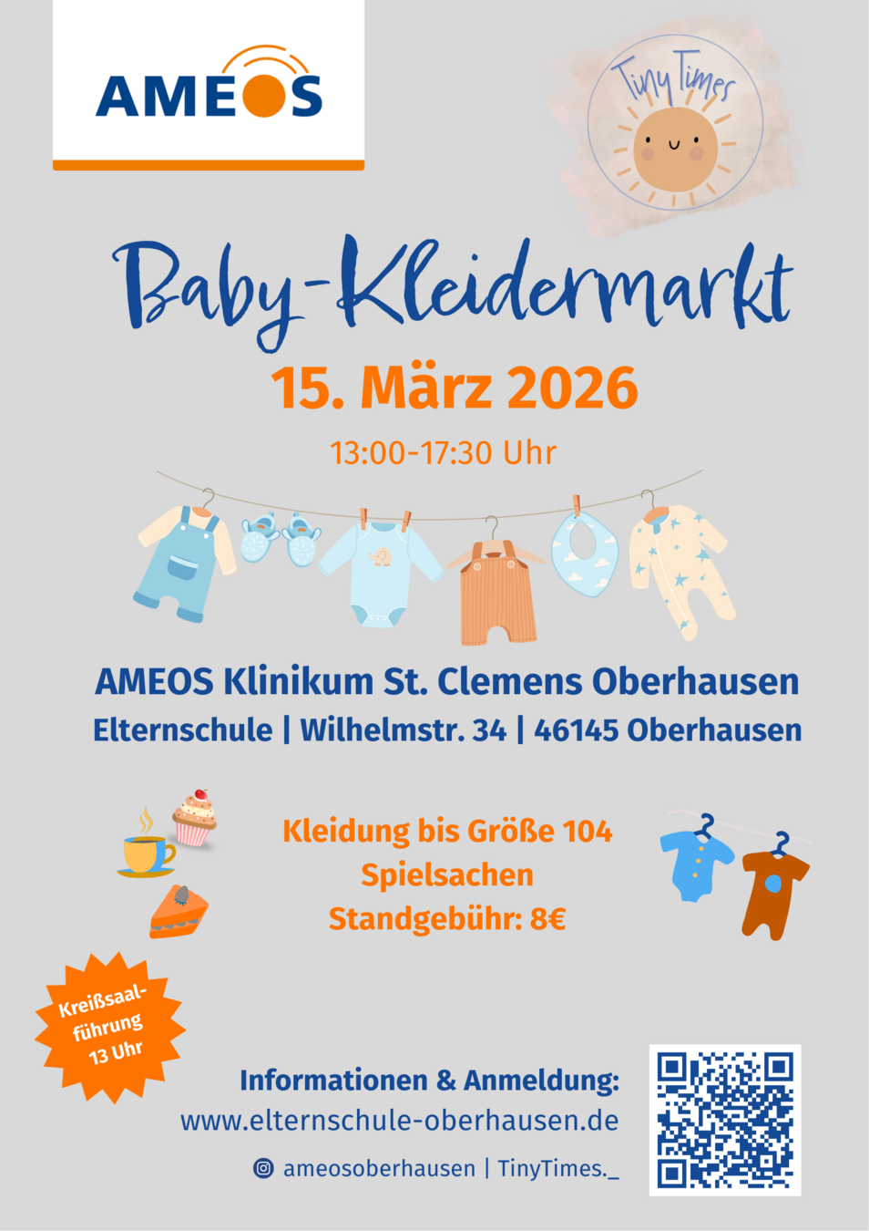 Die Erstausstattung für einen neuen Erdenbürger ist teuer. Schon nach wenigen Wochen ist der liebevoll ausgesuchte Strampler zu klein, dabei ist er noch wie neu. Der Baby- und Kinderkleidermarkt in der Elternschule im AMEOS Klinikum St. Clemens Oberhausen (Wilhelmstr. 34) bietet deshalb von Eltern für Eltern alles, was rund um Schwangerschaft und Babyzeit benötigt wird: Kinderkleidung, Babyzubehör, Spielzeug oder Umstandskleidung.
